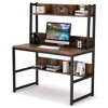 The advanced design is 42" L x 19.69" W x 57.87"H (floor-to-top). The compact size is suitable for your home office. An all-encompassing workstation combining desk, upper hutch, and bottom storage shelf to simplify your storage needs. The open structure encourages easy storage with side barriers to keep items secure.