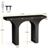 Overall Size: 11.81"D x 47.24"W x 33.85"H. While this entryway table may not offer additional storage like extra shelves or drawers, it serves as a stylish platform to showcase your collected items, photographs, and more. The hollow arc shape in the middle allows for extra decoration. The foyer table's simple, unadorned design embraces minimalism, enabling it to blend seamlessly with any home and furniture styles.