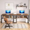 Whether for an office, school or home, this elegantly designed 78-inch double workstation desk is a game changer. It effortlessly accommodates two people, offering a spacious and modern side-by-side workspace without sacrificing style or space, great for organizing and sharing work space with your partner, workmate or family.78.74” (L) x 23.62” (W) desktop can easily accommodate your large monitors, printers, desk accessories. This double office desk features hidden bookshelves underneath and 2-tier middle storage shelves provides tons of room to store books, binders, office supplies, files, knickknacks. Organize efficiently and access easily all your essentials. This versatile desk can be utilized as a computer desk, office desk, 2 person desk, gaming desk, and study table.