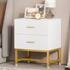 Sized at 19.7" L x 15.8" W x 25.6" H, this bedside table features two spacious drawers. From end Table to coffee table, this stylish yet practical nightstand is ideal for keeping your space tidy and displaying cherished items.Optimal for maintaining harmony within your interior, we recommend securing a pair of our beautiful and budget-friendly nightstands.