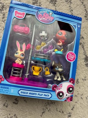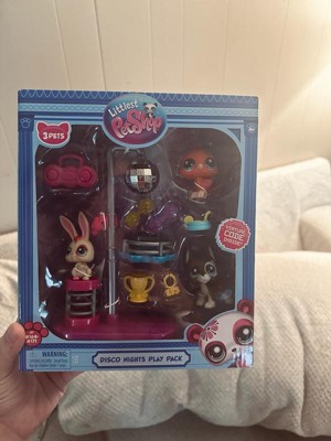 - Disco Nights Play Pack: Come play with 3 new festive bobblin’ pets in the Littlest Pet Shop Disco Nights Play Pack! Get down on the dance floor and show off your new moves with this groovy playset that kids and collectors will love.