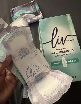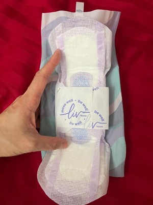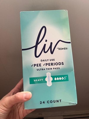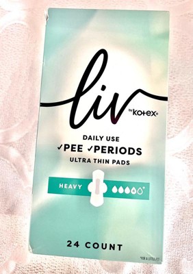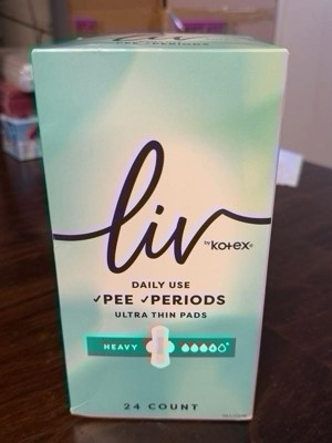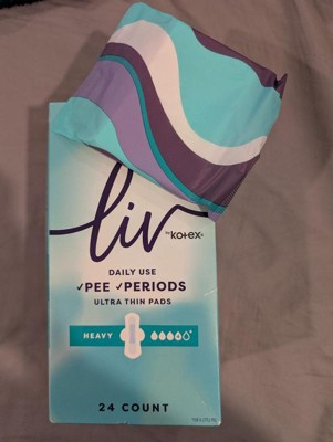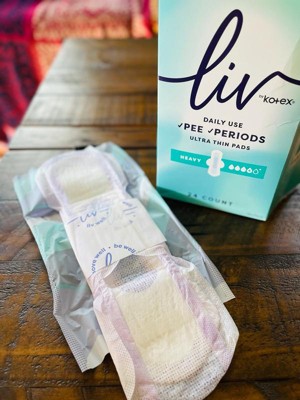 - Liv Ultra Thin Pads: 24 feminine pads with wings, heavy absorbency