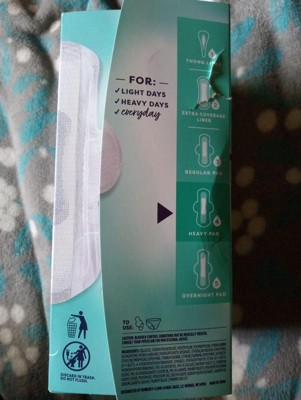 [This review was collected as part of a promotion.] I love the colors of the packaging. It's easy to open and use. There is no scent. Comfort wise I'd say they are just fine for pads. They cover in the right places. I used them on both light period days and just when I know I won't be near any bathrooms for the little bit of pee that may come out when I'm holding and such occasions. It has the expected amount of absorbency. A few drops of pee or light period is fine for these pads. Does the job. I like scented products but I do think I will use these and recommend them to others. I was sent this product for free from both Influenster and Kotex in exchange for my honest review.