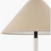 - Materials: Body: Resin; Shade (Outside): Linen; Shade (Inside): Plastic; Finial: Iron