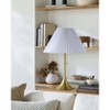 - Color: Body: Metallic - Brass; Base: Metallic - Brass; Shade: White; Finial: Metallic - Brass; Harp: Metallic - Brass; Cord: Translucent