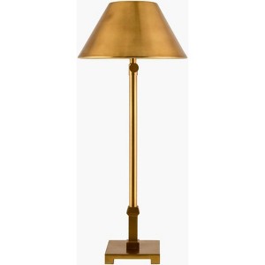 Illuminate your space with the sophisticated charm of the Andenes accent table lamp. Standing at 34 inches tall, this mid-century modern masterpiece is crafted entirely from iron, including both its body and base, and features a sleek metal shade. Made in India, the Andenes lamp brings a touch of elegance and timeless style to any room. Its minimalist design makes it perfect for enhancing your decor without overwhelming it. Easy to care forjust wipe clean with a dry cloth to maintain its stunning finishthis lamp is the ideal blend of form and function. Brighten up your home with the unique allure of the Andenes accent table lamp!