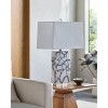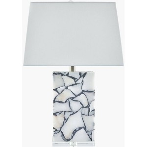 - Materials: Body: Stone; Base: Crystal; Shade (Outside): Linen; Shade (Inside): Polyester; Finial: Crystal