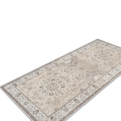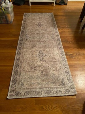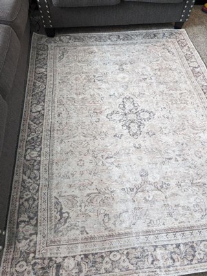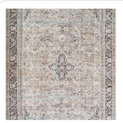 [This review was collected as part of a promotion.] This rug is a nice accent to compliment neutral decor. It is rather thin and low pile, so would work best with a rug pad beneath it. I love that it is machine washable, as that will surely come in handy with pets and a toddler. Unfortunately it probably is not the best choice for homes with cats, as mine immediately gravitated to the rug and made several snags with their claws on the first day. The rug itself looks much more faded in person than it looks in the stock photos and the design is not so distinctive. It has an aged sun-faded look like it is trying to give the vibe of being an old family heirloom that your great grandmother used to beat with a straw broom. It is a good size at 5'3" × 7'. As The Dude would say, "it really tie(s) the room together"