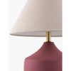 - Color: Body: Brick; Shade (Outside): Beige; Shade (Inside): White; Finial: Metallic - Brass; Harp: Metallic - Brass; Cord: Translucent