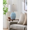 - Color: Body: Bright Blue; Shade: White; Finial: Metallic - Brass; Harp: Metallic - Brass; Cord: Translucent
