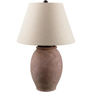 - Materials: Body: Cement; Shade (Outside): Linen; Shade (Inside): Polyester; Finial: Plastic