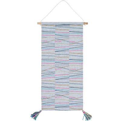 Bring a modern and stylish touch to your home decor with this Colorful Grid Wall Hanging. This unique handmade piece is crafted from a blend of cotton, wool, and polyester for an eye-catching look. The hand woven construction lends it textural interest and visual appeal. Perfect for adding a touch of color to any room in your home, this wall hanging is sure to become a conversation starter. This piece is made in India and requires spot cleaning only.