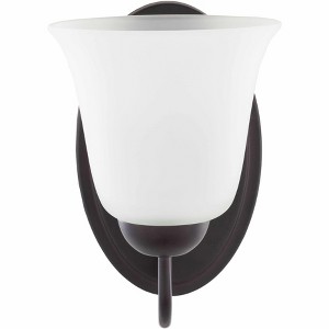 - Color: Fixture: Metallic - Bronze, White; Base: Brown; Shade: White