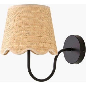 Illuminate your home with the charming Elanora wall sconce, a perfect blend of Arts & Crafts traditional style and modern functionality. Crafted with an iron fixture that exudes strength and durability, this sconce features a dual-layered shade design rattan on the outside for an organic, earthy appeal, and polyester on the inside to ensure a soft, diffused glow. Whether flanking your favorite artwork or adding a warm touch to your hallway, this elegant piece creates an inviting ambiance effortlessly. Keep it looking pristine by simply wiping clean with a dry clothno need for harsh cleaners that could mar its beautiful finish. The Elanora wall sconce is more than just lighting it's an artful addition to any space.