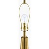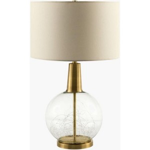 - Color: Body: Clear, Metallic - Brass; Base: Metallic - Brass; Shade: White; Finial: Metallic - Brass; Harp: Metallic - Brass; Cord: Translucent