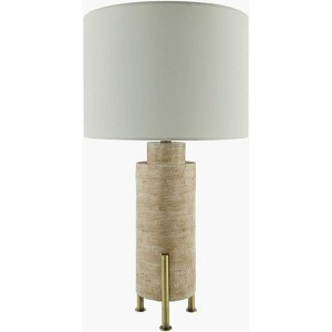 Introducing the Ongato Accent Table Lamp, a masterpiece of Industrial Rustic design that effortlessly elevates any space. Standing tall at 30 inches, this eye-catching lamp features a robust cement and iron body, seamlessly blending raw materials for an authentically rugged look. The linen exterior shade paired with a polyester interior creates a warm and inviting glow, perfect for cozy evenings or adding character to your workspace. Easy to maintain with just a dry cloth, this lamp is as practical as it is stylish. Illuminate your home with the Ongato Accent Table Lamp and experience the perfect harmony of industrial charm and rustic elegance.
