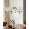 Illuminate your space with the timeless elegance of the Paloma chandelier. Inspired by the Arts & Crafts Traditional style, this stunning fixture is a harmonious blend of iron and linen, exuding both strength and sophistication. The dual-layered shade features an outer linen layer for a classic touch and an inner layer combining linen and polyester for a soft, diffused glow that creates an inviting ambiance in any room. Effortlessly stylish, this chandelier is as easy to maintain as it is beautifuljust wipe clean with a dry cloth to keep it looking its best. Elevate your home decor with the Paloma chandelier, where tradition meets contemporary charm.