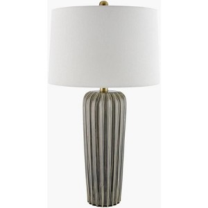 - Color: Body: Gray; Shade: White; Finial: Metallic - Brass; Harp: Metallic - Brass; Cord: Translucent