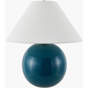 - Color: Body: Blue; Shade: White; Finial: Metallic - Brass; Harp: Metallic - Brass; Cord: Translucent