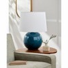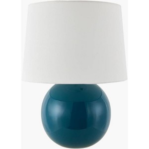 - Color: Body: Blue; Shade: White; Finial: Metallic - Brass; Harp: Metallic - Brass; Cord: Translucent