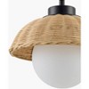 - Materials: Fixture: Rattan; Shade (Outside): Rattan; Shade (Inside): Glass, Rattan
