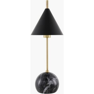 Introducing the Tunja accent table lamp, a stunning blend of industrial and rustic charm that effortlessly elevates any room's ambiance. Standing 22 inches tall, this lamp features a robust iron body and base, coupled with a chic metal shade that has a plastic interior for optimal light diffusion. Perfect for adding a touch of edgy sophistication to your decor, its sleek design makes it a versatile piece for both contemporary and vintage-inspired spaces. Simple to maintain, just wipe clean with a dry cloth to keep it looking pristineno need for harsh cleaners here. Illuminate your home with the unique character and functional beauty of the Tunja accent table lamp!