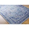 A: The rug features a traditional style with a medallion and botanical pattern.