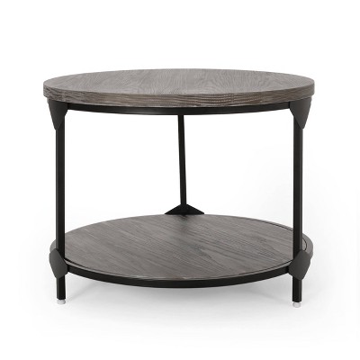 LIVAREEmlen Modern Handcraft Drum Coffee Table Length 43.7 inch for Living Room,Oval Small Coffee Table with Sturdy Pedestal,Black