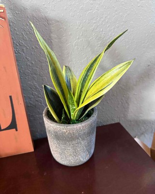 [This review was collected as part of a promotion.] Got this snake plant for our bookshelves to replace an older plant. It came shipped and was packaged nicely. It is a little bit smaller than I thought it would be, but it works in the space that I was thinking. It comes already in a greyish brown pot which is nice. The pot feels sturdy and there are stopper on the bottom of it too which is nice. Overall I like it and it looks nice on the shelf. I received an incentive to write this review.