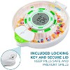 - Pill dispensers with included locking key and secure lid that keep pills safe and prevents spills.