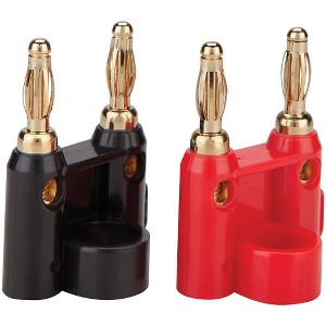 Standard heavy-duty banana plug connector for speaker cables. Two per package. Mates with 5-way binding posts on power amplifiers or passive loudspeakers. Reliable connectivity between cables and audio components. Lifetime guarantee.