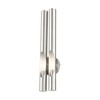 Collection: Acra, Material: Steel, Finish Color: Brushed Nickel, Width: 5.13", Height: 22", Depth: 3.25", Height From Outlet Box: 15", Backplate Width: 5.13", Backplate Length: 0.75", Lamping Type: Incandescent, Number Of Bulbs: 2, Wattage: 40 Watts, Moisture Rating: Dry Rated, Desc: The minimalistic Acra collection was inspired by the industrial landscape of metropolitan cities across Europe and Asia. Delicate tubular shapes are interrupted by clever cutouts to create a visually interesting light distribution. This double light satin brass finish sconce will integrate into a contemporary, minimal, urban or sleek interior design setting. Mounting Direction: Up or Down / Shade Included: Yes. ,