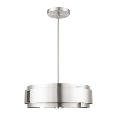 Collection: Addison, Material: Steel, Finish Color: Brushed Nickel, Width: 22", Height: 21.25", Hanging Method: Chain, Chain Length: 36", Lamping Type: Incandescent, Number Of Bulbs: 5, Wattage: 300 Watts, Moisture Rating: Dry Rated, Desc: �Inspired by classic round fixtures and updated with clean lines and angles to create a look that is decidedly modern the Addison is a delicate, eye catching silhouette. It is a striking addition to any contemporary interior.,
