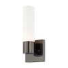Collection: Aero, Material: Steel, Finish Color: Black Chrome, Width: 4.5", Height: 11.25", Depth: 3.9", Height From Outlet Box: 8.75", Backplate Width: 4.5", Lamping Type: Incandescent, Number Of Bulbs: 1, Wattage: 60 Watts, Moisture Rating: Dry Rated, Desc: With the sleek contemporary design, the Aero bath sconce casts a soft, flattering light as the tubular etched opal glass diffuses the light of one lamp. Mounting Direction: Up/Down / Back Plate Height: 0.75 / Back Plate Width: 4.50 / Shade Included: Yes / Shade Dimensions: 2.38 x 7.88. ,