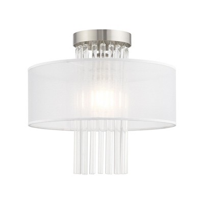 Collection: Alexis, Material: Steel, Finish Color: Brushed Nickel, Width: 20", Height: 14.5", Hanging Method: Flush, Lamping Type: Incandescent, Number Of Bulbs: 1, Wattage: 100 Watts, Moisture Rating: Dry Rated, Desc: Dazzle contemporary decor schemes with the upscale feel of this elegant ceiling mount. The Alexis fills a bling quotient with beautiful grade-A K9 crystal rods that cascades from a brushed nickel base with a hand crafted translucent fabric shade. Canopy Included: Yes / Shade Included: Yes / Canopy Diameter: 5.00. ,