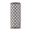 Collection: Arabesque, Material: Steel, Finish Color: English Bronze, Width: 5.13", Height: 12.88", Depth: 3.88", Height From Outlet Box: 6.38", Backplate Width: 4.38", Backplate Length: 12", Lamping Type: Incandescent, Number Of Bulbs: 1, Wattage: 40 Watts, Moisture Rating: Dry Rated, Desc: Our Arabesque single light wall sconce will add refined style and a hint of mystery to your decor. The off-white fabric hardback shade creates a warm illumination, while the light brings to life the intricate soft gold cutout pattern.,