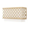 Collection: Arabesque, Material: Steel, Finish Color: Soft Gold, Width: 13", Height: 7", Depth: 3.88", Height From Outlet Box: 3.63", Backplate Width: 8", Backplate Length: 6.38", Lamping Type: Incandescent, Number Of Bulbs: 2, Wattage: 40 Watts, Moisture Rating: Dry Rated, Desc: Our Arabesque two light wall sconce will add refined style and a hint of mystery to your decor. The off-white fabric hardback shade creates a warm illumination, while the light brings to life the intricate soft gold cutout pattern.,