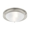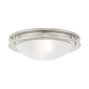Collection: Ariel, Material: Steel, Finish Color: Brushed Nickel, Width: 13", Height: 4", Hanging Method: Flush, Lamping Type: Incandescent, Number Of Bulbs: 2, Wattage: 60 Watts, Moisture Rating: Dry Rated, Desc: A strong, Art Deco-influenced ceiling light fixture. Features graceful bands of brushed nickel encircling a white alabaster glass. A great lighting look for the kitchen, hallway, bathroom and more. Shade Included: Yes. ,