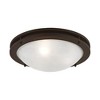 Collection: Ariel, Material: Steel, Finish Color: Bronze, Width: 17", Height: 5", Hanging Method: Flush, Lamping Type: Incandescent, Number Of Bulbs: 3, Wattage: 60 Watts, Moisture Rating: Dry Rated, Desc: A strong, Art Deco-influenced ceiling light fixture. Features graceful bands of brushed nickel encircling a white alabaster glass. A great lighting look for the kitchen, hallway, bathroom and more. Shade Included: Yes. ,