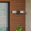 Collection: Atlantic, Material: Aluminum, Finish Color: Textured Black/Antique Silver, Width: 17", Height: 4.5", Depth: 3.9", Height From Outlet Box: 8.5", Backplate Width: 4.5", Backplate Length: 0.25", Lamping Type: Incandescent, Number Of Bulbs: 2, Wattage: 60 Watts, Moisture Rating: Dry Rated, Desc: Add a dash of character and radiance to the exterior of your home with the Atlantic wall lantern. This two-light medium fixture features two clear glass cylinder closed top shades on either side, set off with a bronze finish with antique gold finish accents. The clean lines of the back plate complement the cylindrical glass shades adorned with detailed trim at the end of each glass creating a minimal, sleek look that works well in most outdoor or indoor settings. This fixture adds charm and contemporary aesthetics to your home.,