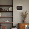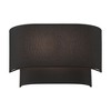 Collection: Bainbridge, Material: Steel, Finish Color: Black, Width: 13", Height: 8", Depth: 3.95", Height From Outlet Box: 4", Backplate Width: 6.5", Backplate Length: 7", Lamping Type: Incandescent, Number Of Bulbs: 2, Wattage: 40 Watts, Moisture Rating: Dry Rated, Desc: The Bainbridge collection is both modern and versatile. The hand-crafted black fabric hardback shade is set off by the silky white fabric on the inside setting a pleasant mood. Perfect fit for the hallway, bathroom, kitchen and a small bedroom. This sleek design is shown in a black finish.,