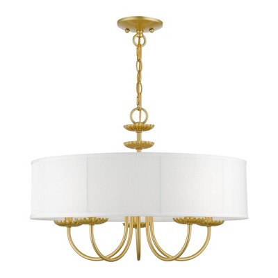 Collection: Brookdale, Material: Steel, Finish Color: Soft Gold, Width: 16", Height: 15", Hanging Method: Chain, Chain Length: 36", Lamping Type: Incandescent, Number Of Bulbs: 3, Wattage: 180 Watts, Moisture Rating: Dry Rated, Desc: The three-light Brookdale pendant chandelier combines floral details and elements to create an updated look. The hand-crafted off-white fabric hardback drum shade is set off by an inner silky white fabric that combines with chandelier-like antique brass finish sweeping arms which creates a versatile effect. Perfect fit for the living room, dining room, kitchen or bedroom. Canopy Included: Yes / Canopy Diameter: 5.13 / Chain Length: 36.00 / Shade Included: Yes / Shade Dimensions: 16 x 5.5. ,