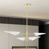 Collection: Capistrano, Material: Steel, Finish Color: Satin Brass, Width: 38", Height: 18.25", Length: 48.88", Hanging Method: Stem, Lamping Type: Incandescent, Number Of Bulbs: 4, Wattage: 240 Watts, Moisture Rating: Dry Rated, Desc: The Capistrano collection is presented in a satin brass finish with simple and elegant white finished shades. It defines mid-century lines of this Scandivian inspired collection. This four-light pendant chandelier will complete the look of modern interior kitchen, dining room, living room or a bedroom. No. of Rods: 3 / Canopy Included: Yes / Shade Included: Yes / Canopy Diameter: 6 x 0.75 / Rod Length(s): 18.00. ,