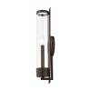 Collection: Castleton, Material: Steel, Finish Color: Bronze, Width: 4.75", Height: 18", Depth: 3.9", Height From Outlet Box: 15.5", Backplate Width: 4.75", Backplate Length: 0.75", Lamping Type: Incandescent, Number Of Bulbs: 1, Wattage: 60 Watts, Moisture Rating: Dry Rated, Desc: A glass cylinder shines with light as steel straps and a rounded back plate ground this Castleton sconce with a modern style. The clean, transitional, versatile sleek look will add romantic light while maintaining your minimalist interior. This beautiful sconce comes in an bronze finish. With its easy installation and low upkeep requirements, this light will not disappoint.,