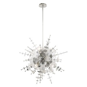Collection: Circulo, Material: Steel, Finish Color: Polished Chrome, Width: 30", Height: 38", Hanging Method: Stem, Lamping Type: Incandescent, Number Of Bulbs: 6, Wattage: 360 Watts, Moisture Rating: Dry Rated, Desc: Cast a luxurious glow over your room with this polished chrome six light pendant chandelier. It has beautiful geometric glass discs that will add dimension to any room. This Art Deco-inspired design features a polished chrome finish for an up-scaled taste of class. No. of Rods: 4 / Canopy Included: Yes / Shade Included: Yes / Canopy Diameter: 5.13 / Rod Length(s): 18.00. ,