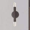 Collection: Copenhagen, Material: Steel, Finish Color: Bronze, Width: 5.13", Height: 9.88", Depth: 3.75", Height From Outlet Box: 5", Backplate Width: 5.13", Backplate Length: 0.75", Lamping Type: Incandescent, Number Of Bulbs: 2, Wattage: 60 Watts, Moisture Rating: Dry Rated, Desc: Exposed bulb sockets are fixed over a white finish to create an eclectic look perfect for mid century modern or transitional spaces wanting an industrial touch.,