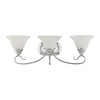 Collection: Coronado, Material: Steel, Finish Color: Polished Chrome, Width: 26.5", Height: 8.5", Depth: 9.25", Height From Outlet Box: 3.5", Backplate Width: 8", Backplate Length: 4.5", Lamping Type: Incandescent, Number Of Bulbs: 3, Wattage: 100 Watts, Moisture Rating: Dry Rated, Desc: Classic polished chrome three light fixture paired with white alabaster glass. Timeless in its vintage appeal, this light is stylish for both new and restored homes. Mounting Direction: Up/Down / Shade Included: Yes. ,