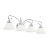 Collection: Coronado, Material: Steel, Finish Color: Polished Chrome, Width: 36.25", Height: 8.5", Depth: 9.25", Height From Outlet Box: 3.5", Backplate Width: 8", Backplate Length: 4.5", Lamping Type: Incandescent, Number Of Bulbs: 4, Wattage: 100 Watts, Moisture Rating: Dry Rated, Desc: Classic polished chrome four light fixture paired with white alabaster glass. Timeless in its vintage appeal, this light is stylish for both new and restored homes. Mounting Direction: Up/Down / Shade Included: Yes. ,