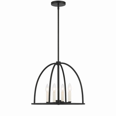 Collection: Cresthaven, Material: Steel, Finish Color: Bronze/Antique Brass, Width: 24", Height: 22", Hanging Method: Stem, Lamping Type: Incandescent, Number Of Bulbs: 4, Wattage: 240 Watts, Moisture Rating: Dry Rated, Desc: The Cresthaven collection has a clean, crisp look and contemporary appeal. The hand-crafted off-white fabric hardback shade offers a diffused warm light. This black finish with brushed nickel finish accents four-light pendant chandelier has sleek exposed angular arms making it tasteful to elevate your style. Will adapt well in the living room, dining room and bedroom. No. of Rods: 3 / Canopy Included: Yes / Shade Included: Yes / Canopy Diameter: 5.13 x 0.75 / Rod Length(s): 18.00. ,