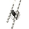 Collection: Denmark, Material: Steel, Finish Color: Brushed Nickel, Width: 5.13", Height: 18", Depth: 3.75", Height From Outlet Box: 14", Backplate Width: 5.13", Backplate Length: 0.75", Lamping Type: Incandescent, Number Of Bulbs: 2, Wattage: 60 Watts, Moisture Rating: Dry Rated, Desc: The clean lines of the Denmark collection remind of early modern Scandivian style. The slim candles rise on the contrasting bar at different heights dymically emulating the shape of a city skyline. This double-light exposed bulb sconce comes in a satin brass finish accented with bronze finish bars. Versatile enough for almost any interior where a dramatic statement is needed such as a bathroom, hallway, dining room, living room or bedroom.,